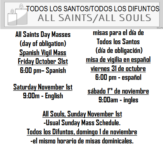 - Mass times for Holy Days of Obligation