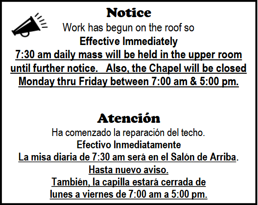 - Mass times for Federal Holidays 7:30 AM